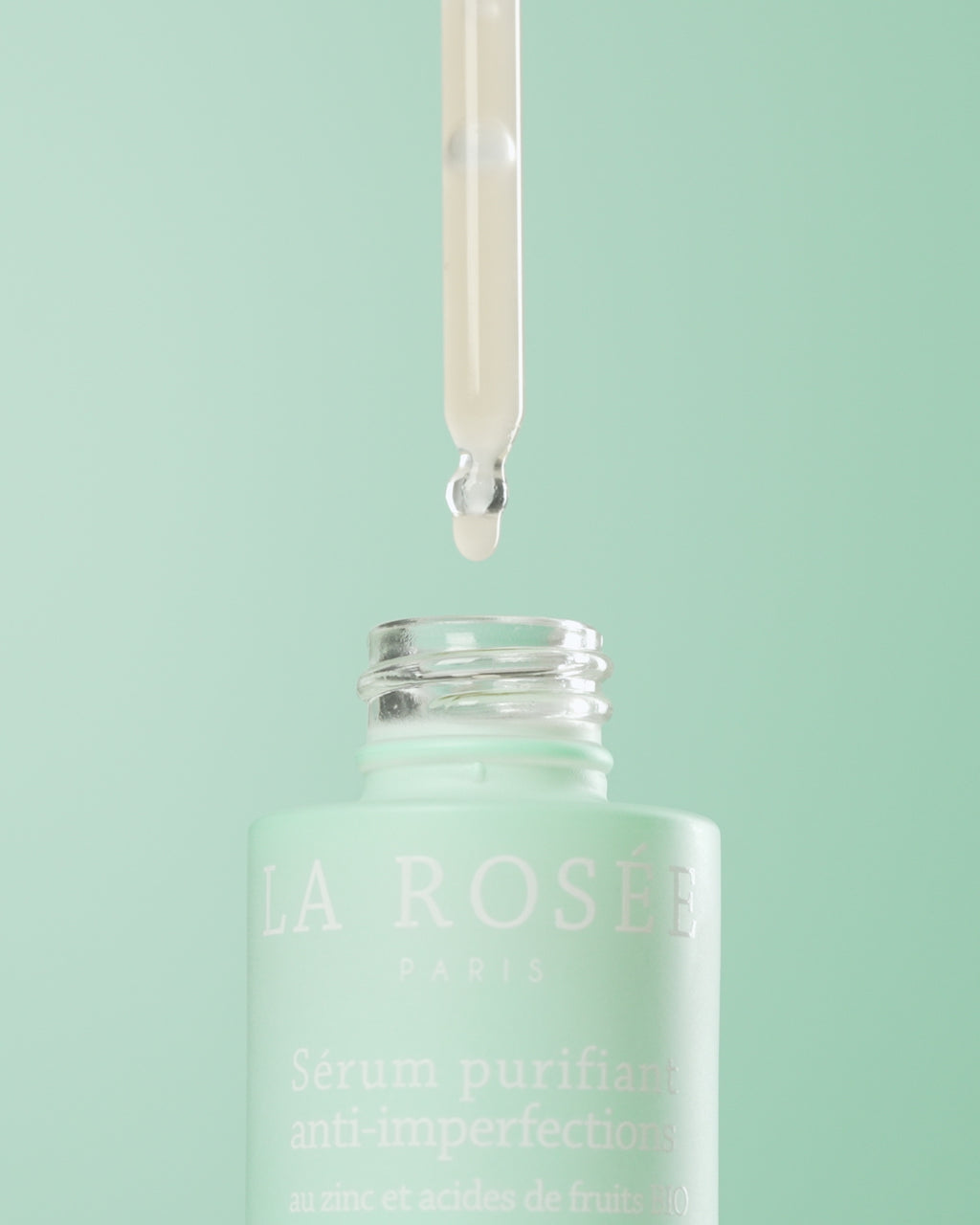 Notre Sérum purifiant anti-imperfections au zinc et acides de fruits BIO diminue l’excès de sébum, désincruste, resserre les pores et exfolie en douceur pour un grain de peau affiné et lissé.